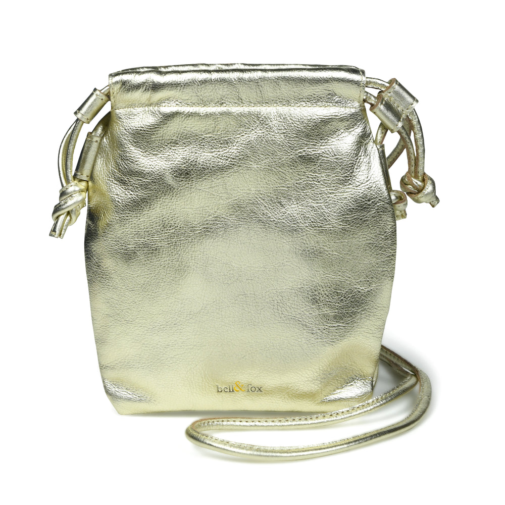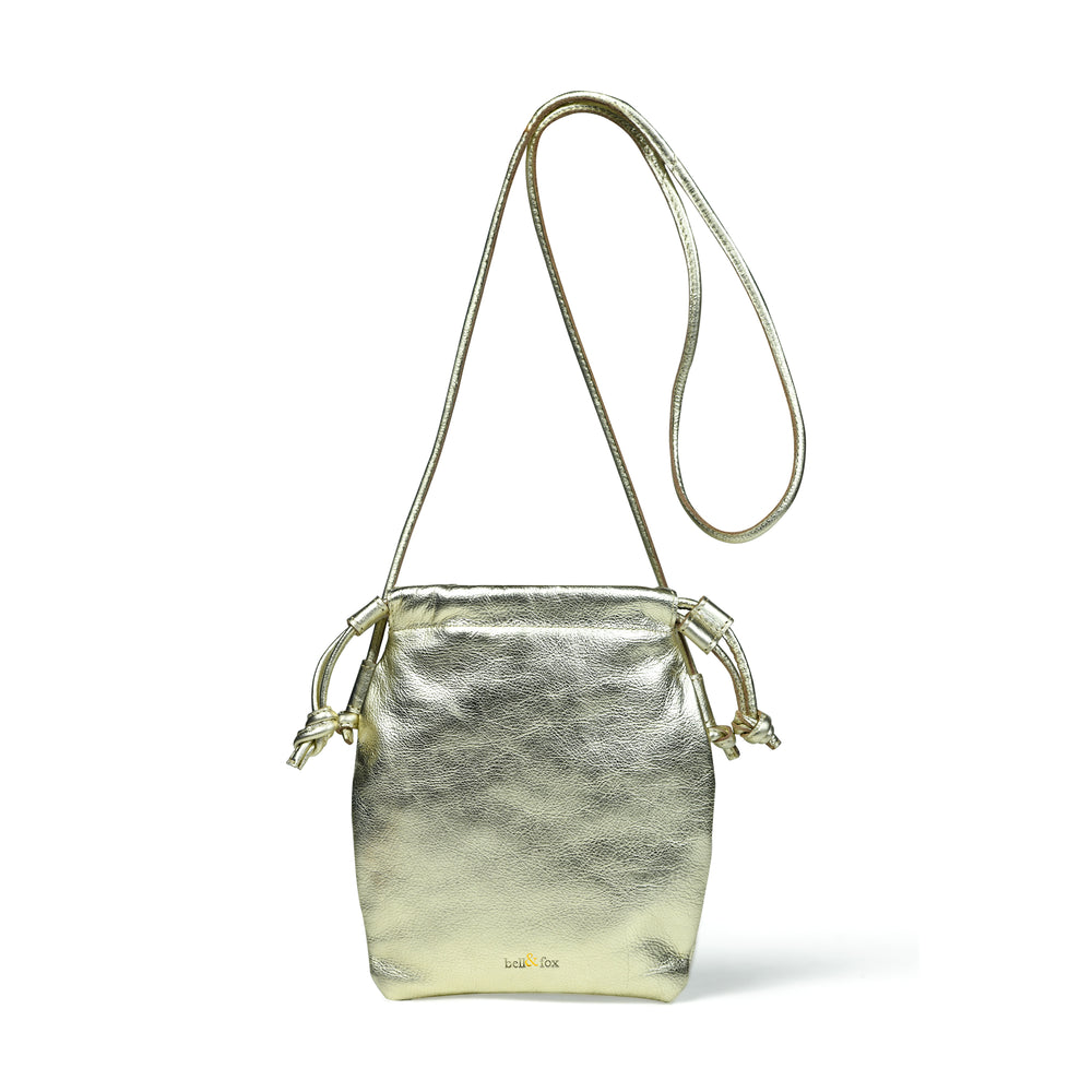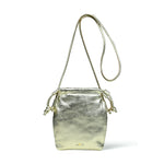 WILLOW Drawstring Crossbody Bag in Pale Gold Metallic Leather