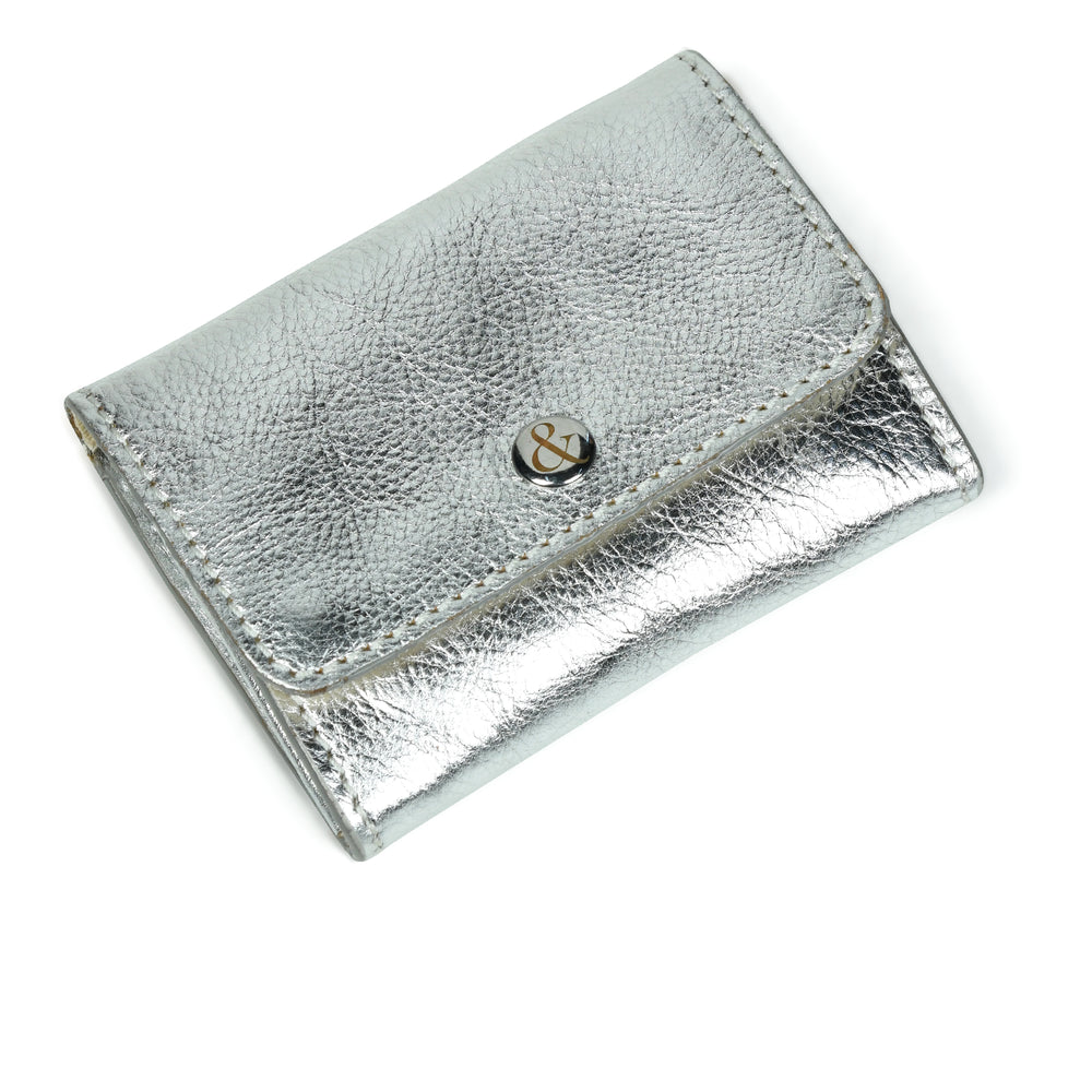 AMELIE Popper Card Holder Purse with Zip - Silver