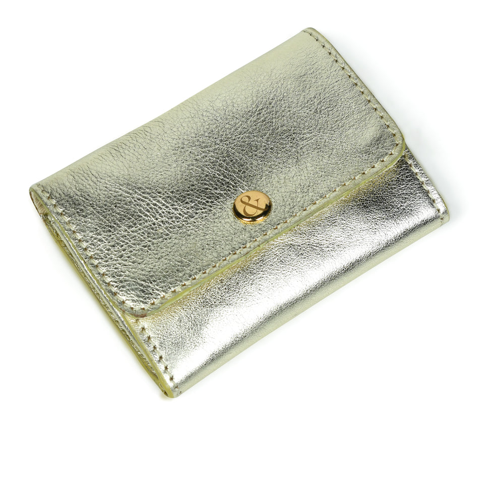 AMELIE Popper Card Holder Purse with Zip - Pale Gold